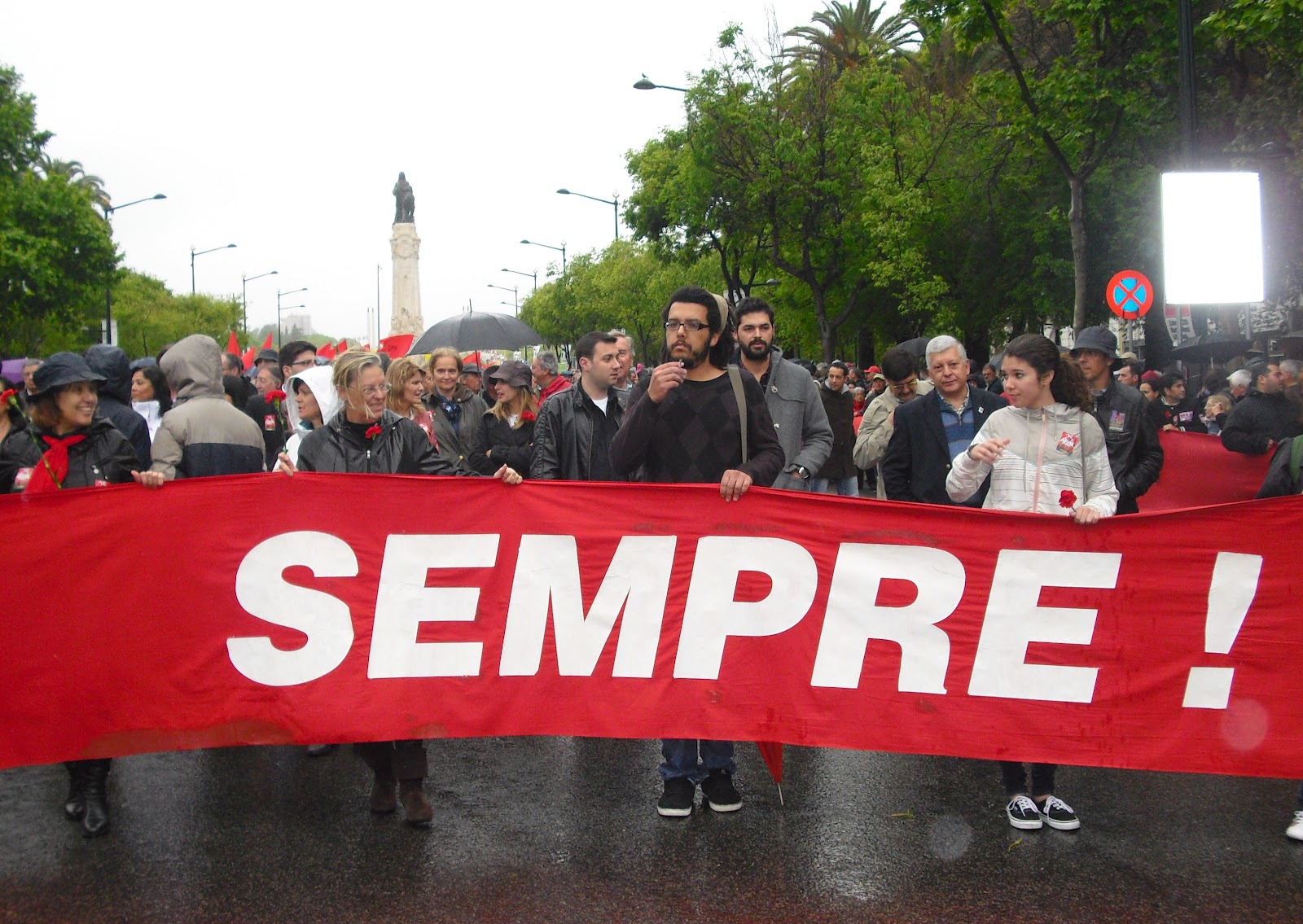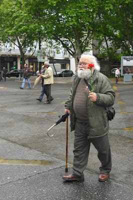 ...Hanno preso parte al corteo del 25 de abril a Lisboa; uomini e donne, bambini e anziani coi garofani in mano hanno attraversato il centro della città al grido di "fascismo nunca mais!". Per me, è stato un onore e un'emozione sfilare proprio accanto a chi FISICAMENTE c'era quel giorno. La cosa bella di partecipare alla commemorazione del 25 de abril a Lisboa infatti è proprio quella di poter camminare fianco a fianco con coloro che hanno vissuto nel fascismo e hanno partecipato alla rivoluzione e che pertanto SANNO BENE DI COSA STIAMO PARLANDO. Non è come danzare una versione folk di Bella Ciao a Piazza San Giovanni a Roma, che sarà bello si, però ouh! Questo è più bello! Qua vedi occhi lucidi per la commozione, vedi anziani che potrebbero essere i tuoi nonni urlare che il Fascismo è una merda (letteralmente), i loro figli suonare tamburi e i loro nipoti sventolare entusiasti bandiere. Puoi vedere una famiglia abbracciata a saltare come allo stadio. Puoi sentire un'intera strada vibrare di energia. Questo è il 25 de abril, e quando dagli altoparlanti suona Grândola vila morena sembrano cantare persino gli alberi. Ascoltarla oggi fa venire i brividi, ed è quello che faremo tuttiinsiemeappasionatamente alla fine di questo post; prima però, come sempre, guardiamoci una breve selezione delle foto che ho scattato durante il corteo dove, per l'appunto, era possibile incontrare le nuove LEVE...