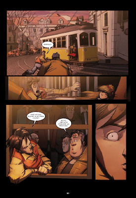 ...Un piccolo grande fenomeno editoriale made in Portugal frutto del lavoro congiunto del musicista e regista Filipe Melo (che ha avuto l'idea), del soggettista Martin Tejada e degli artisti Juan Cavia (disegni) e Santiago Villa (colori). Un'opera già ristampata diverse volte e che vi consiglio caldamente di procuravi, se amate Lisboa e il fumetto d'avventura: noti paesaggi urbani e divertimento sono assicurati!
