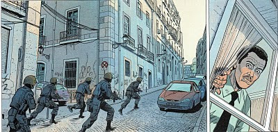 E' dal volume O 13º Passageiro, invece, che sono tratte le prossime immagini. Ancora una Graphic Novel, stavolta a sfondo storico, ambientata in una Lisboa degli anni Quaranta. Dove già svettava imponente l'Elevador de Santa Justa, "colosso "di ferro in piena Baixa lisboeta.