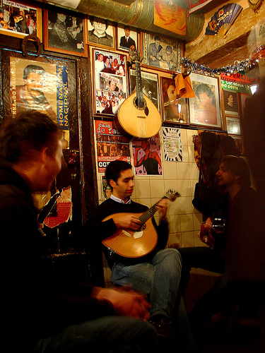 Fermo restando che una Noite de Fado é una delle esperienze secondo me imprescindibili di una visita a Lisbona.... beh, se tanta commozione non vi spaventa, c'é solo da scegliere; le Casas de Fado - ristoranti tipici che offrono Fado dal vivo all'ora di cena - sono innumerevoli, per lo piú sparse nei quartieri storici come Alfama, Mouraria e Bairro Alto. Ma attenzione perché, come si diceva qui, l'enorme sviluppo turistico che negli ultimi anni ha interessato la cittá (e, di riflesso, questi quartieri) ha purtroppo abbassato la qualitá generale dell'offerta - sia in termini musicali che di comida - e come sempre accade in questi casi fatto levitare i prezzi, senza giustificazione alcuna se non la SPECULAZIONE SELVAGGIA. Che ouh!, un chouriço assado é pur sempre un salame cotto alla fiamma.....