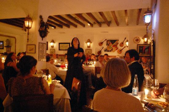 ....Che si autoproclama "A grande Universidade do Fado" (per via del fatto che vi si sono "formati", tra gli altri, artisti consacrati come Mariza e Camané), anche se i prezzi che pratica non sono proprio quelli di una mensa; parliamo infatti di circa 40-50 eurocucuzze a testa. VINO ESCLUSO. Per una cena che, seppur buona, francamente non supera quella delle piccole tascas a conduzione